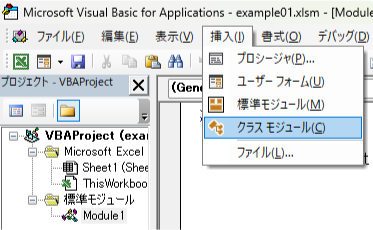 この構成をクラス化する手順を示します。VBEでの作業になります。